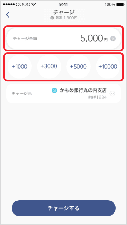 チャージする金額を入力します。
