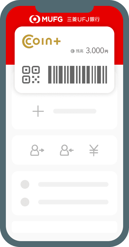 「三菱UFJ銀行」のスマートフォンアプリを起動して、COIN+の画面を見せるとCOIN+残高でお支払いができます。